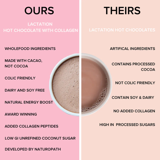 Indulge in a rich, guilt-free hot chocolate designed to nourish your postpartum body while supporting your milk supply.